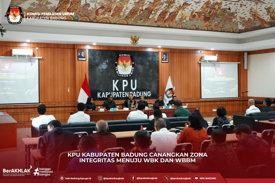 #TemanPemilih, Komisi Pemilihan Umum (KPU) Kabupaten Badung mencanangkan Pembangunan Zona Integritas (ZI) menuju Wilayah Bebas dari Korupsi (WBK) dan Wilayah Birokrasi Bersih dan Melayani (WBBM). Kegiatan berlangsung di Ruang Nayakottama, Gedung Graha Pemilu Alaya Giri Nata, Rabu (29/10).