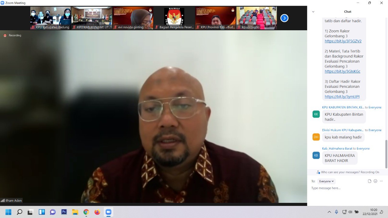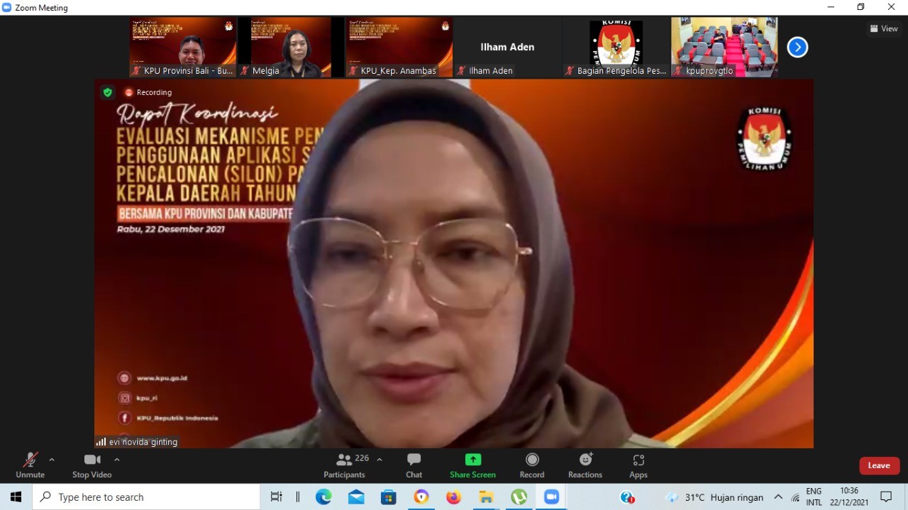 Hal tersebut disampaikan Ketua KPU RI Ilham Saputra, saat membuka Rapat Evaluasi Mekanisme Pencalonan dan Penggunaan Aplikasi Silon pada Pemilihan Serentak Tahun 2020, yang dilaksanakan secara daring, Rabu (22/12) dan dihadiri Divisi Teknis Penyelenggaraan, Divisi Hukum dan Pengawasan dan Kasubag Teknis Pemilu dan Hupmas KPU se Indonesia.