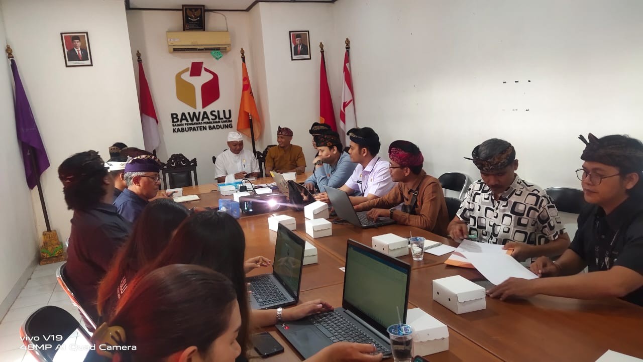 KPU Badung – Memenuhi undangan Bawaslu Kabupaten Badung, salah satu Komisioner KPU Kabupaten Badung yakni I Putu Yogi Indra Permana (Ketua Divisi Hukum dan Pengawasan) menghadiri kegiatan rapat evaluasi pelaksanaan pengawasan pencalonan Anggota DPRD Kabupaten Badung pada Pemilu 2024, bertempat di Sekretariat Bawaslu Badung, Jl. Praja I No. 1-2, Dalung – Kuta Utara, sekitar pukul 09. 00 Wita, Kamis (09/11/2023).