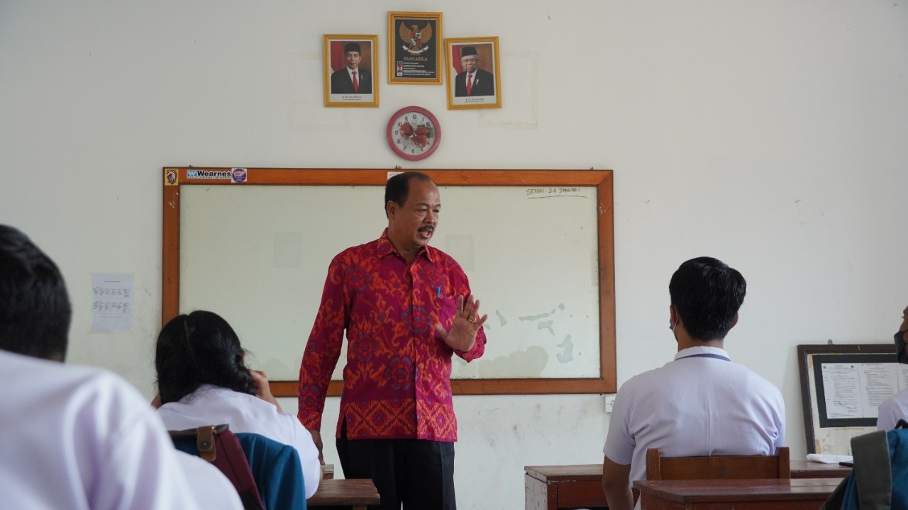 Mangupura, kab-badung.kpu.go.id - Jelang Pemilu/Pemilihan Serentak Tahun 2024, KPU Kabupaten Badung geliatkan sosialisasi pendidikan pemilih guna meningkatkan partisipasi masyarakat. Mengawali kegiatan, Divisi Sosialisasi, Pendidikan Pemilih, Partisipasi Masyarakat dan SDM - I Wayan Artana Dana menyasar segmen Pemilih Pemula di SMAN 1 Mengwi, Selasa (25/01).