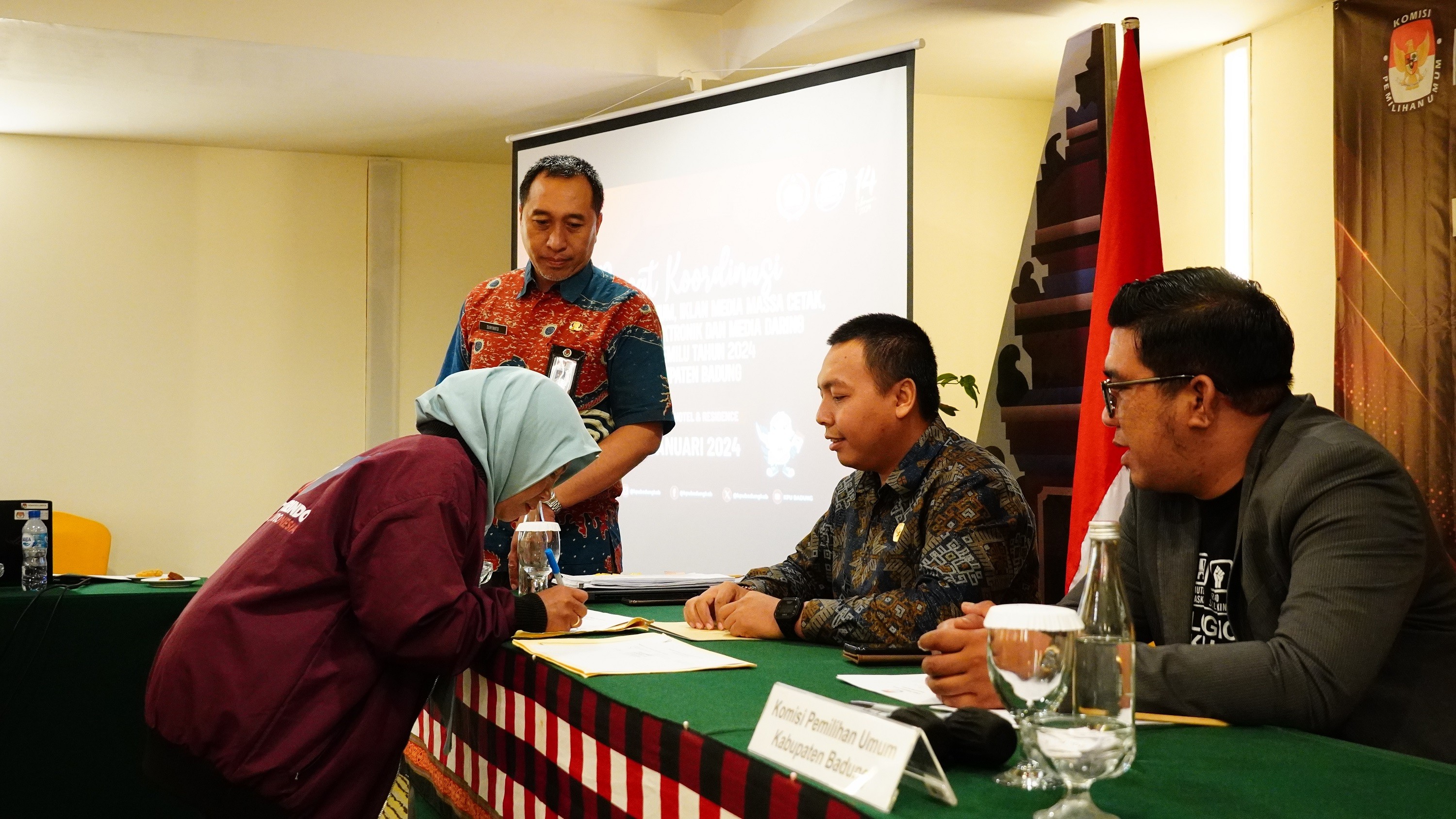 Hadir dari KPU Badung diantaranya Komisioner KPU Badung Ketua Divisi Sosialisasi, Pendidikan Pemilih, Parmas dan SDM, Agung Rio Swandisara beserta Ketua Divisi Hukum dan Pengawasan, I Putu Yogi Indra Permana dan Ketua Divisi Perencanaan, Data dan Informasi, Ni Putu Rulyana Kusuma Wardani. Hadir pula Sekretaris KPU Badung, I Wayan Nopi Suryanto.