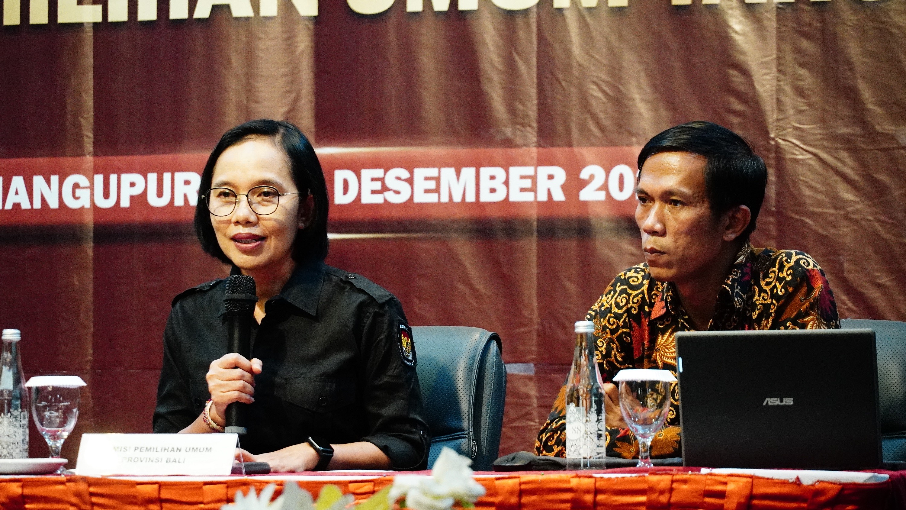 Komisioner KPU Badung Ketua Divisi Teknis Penyelenggaraan, I Nyoman Dwi Suarna Artha menjelaskan beberapa hal diantaranya terkait pelaksanaan pemungutan suara, rapat pemungutan suara, saksi dan Pengawas TPS, pemantau dan Pewarta.