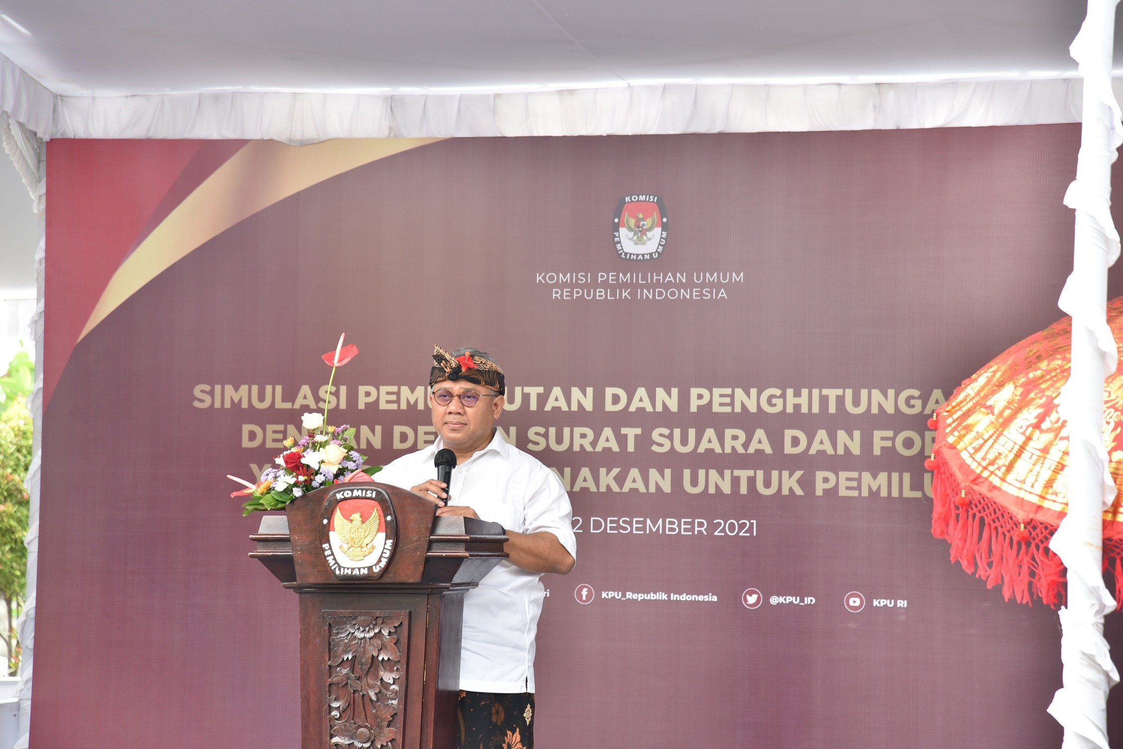Hadir dalam simulasi jajaran pimpinan KPU RI, beberapa KPU Provinsi yang ingin mengetahui bagaimana proses pemungutan dan penghitungan suara dengan desain surat suara dan formulir yang disederhanakan untuk Pemilu Tahun 2024, serta melibatkan Bawaslu Provinsi Partai Politik tingkat Provinsi, KPU Kab/Kota se Bali, Penggiat Kepemiluan dan Mahasiswa.