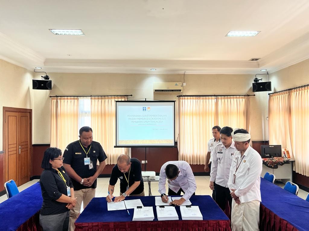 Senada yang disampaikan Ketua KPU Badung saat dimintai konfirmasinya mengungkapkan, “Tadi penyerahan Formulir A surat pindah memilih untuk TPS di Lokasi Khusus, Lapas kerobokan dan Lapas Perempuan Kelas II A Kerobokan.” (Humas KPU Badung).