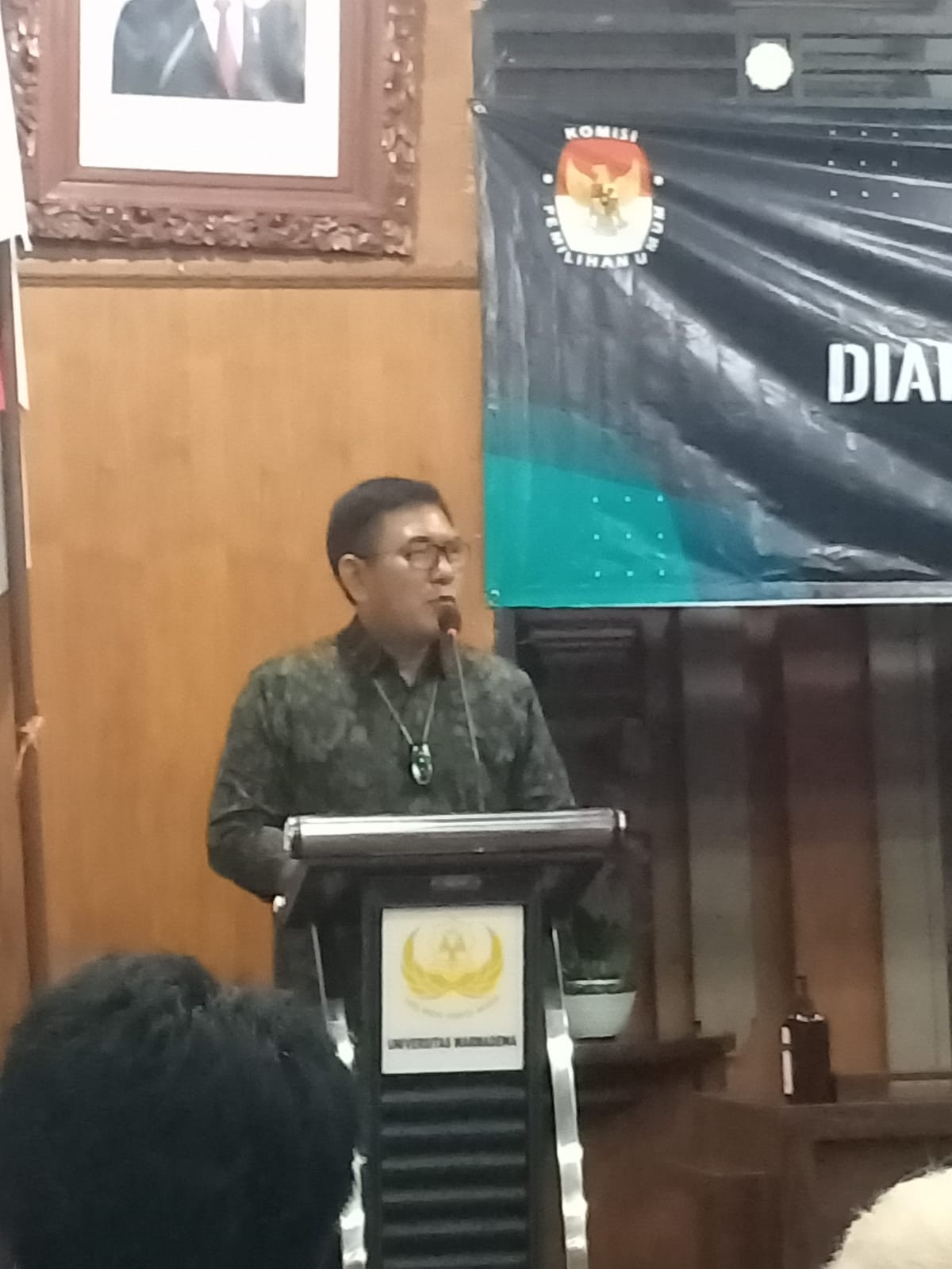Menghadirkan Narasumber Anggota KPU RI Divisi Hukum dan Pengawasan Hasyim Asy'ari, memberikan materi yang bagus untuk tataran tingkat akademisi. Dalam materinya disampaikan bahwa sistem Pemilu 2024 sama dengan Pemilu 2019. Termasuk usulan KPU terkait hari pemungutan suara Pemilu Nasional bulan Februari 2024, namun karena ada Hari Raya Galungan, menjadi 21 Februari 2024.