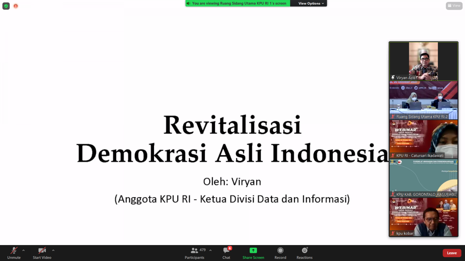 Sesi terakhir, Anggota KPU RI Divisi Data dan Informasi, Viryan Azis menyinggung Revitalisasi Demokrasi Asli Indonesia dengan tiga poin yaitu Indonesia Bangsa Demokratis, fase perkembangan demokrasi Indonesia dan ciri Demokrasi Asli Indonesia. Ada kesadaran demokratis yang tumbuh kembali secara otentik, menjadi pondasi demokrasi Indonesia yang dapat menguatkan pelaksanaan Pemilu dan Pemilihan Serentak Tahun 2024.