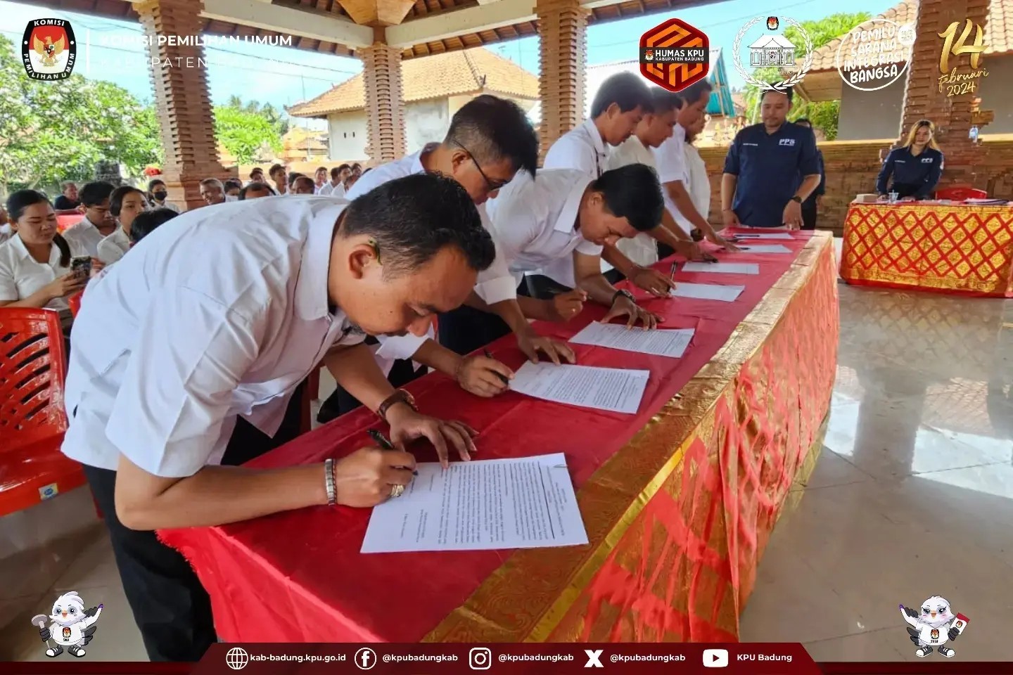 KPU Badung – Komisi Pemilihan Umum (KPU) Kabupaten Badung melantik sebanyak 10.395 Kelompok Penyelenggara Pemungutan Suara KPPS yang bertugas nantinya akan bertugas di 1.485 Tempat Pemungutan Suara (TPS) yang tersebar di Kabupaten Badung pada 14 Februari mendatang.
