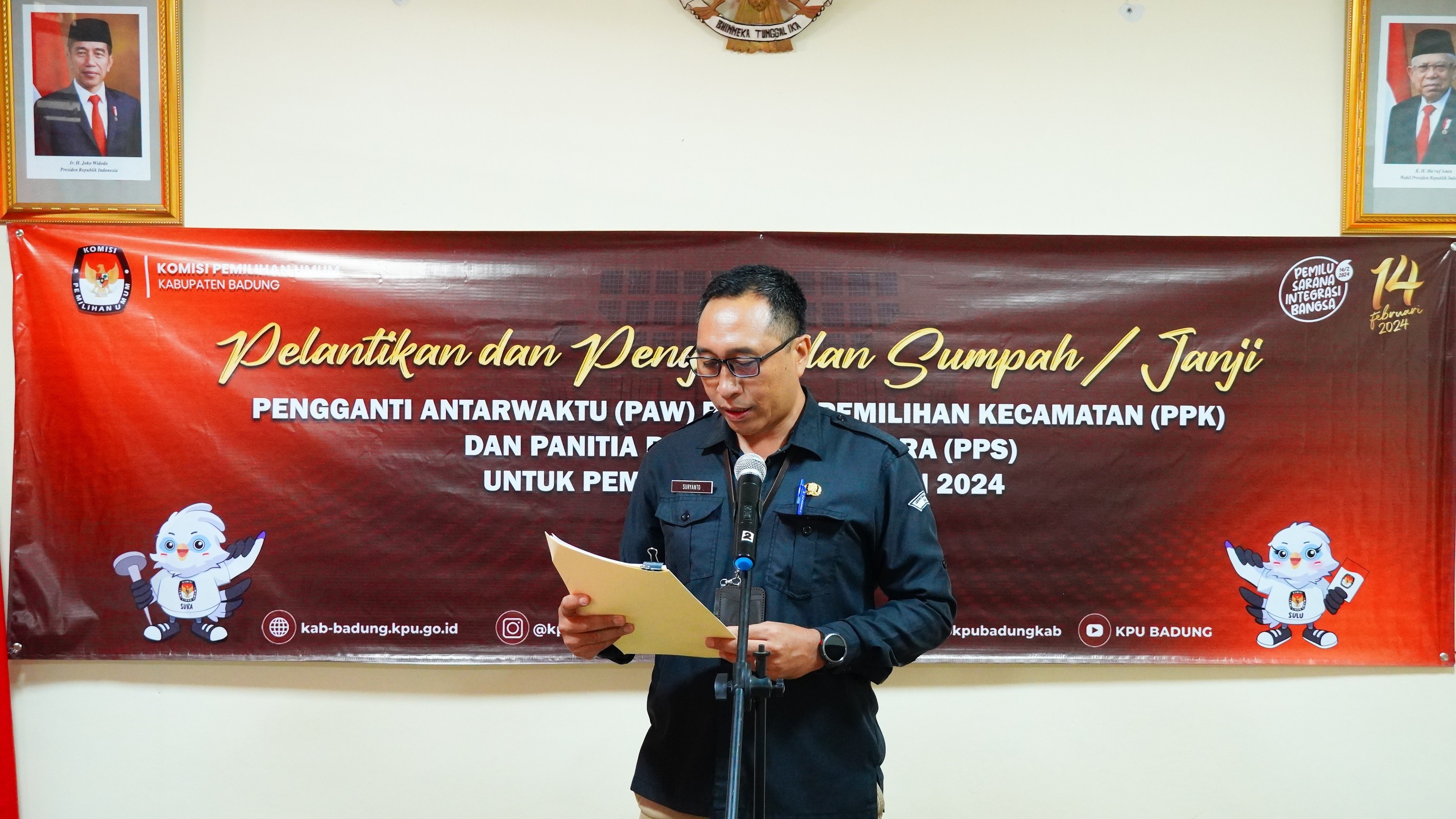 KPU Badung – Di tengah tahapan Pemilihan Umum (Pemilu) Serentak Tahun 2024, Komisi Pemilihan Umum (KPU) Kabupaten Badung melaksanakan pelantikan Pengganti Antar Waktu (PAW) Panitia Pemilihan Kecamatan (PPK) Mengwi dan Kuta Utara serta Panitia Pemungutan Suara (PPS) Desa Dalung, Kelurahan Kapal dan Sading, bertempat di ruang rapat KPU Badung, Rabu (15/11/2023).