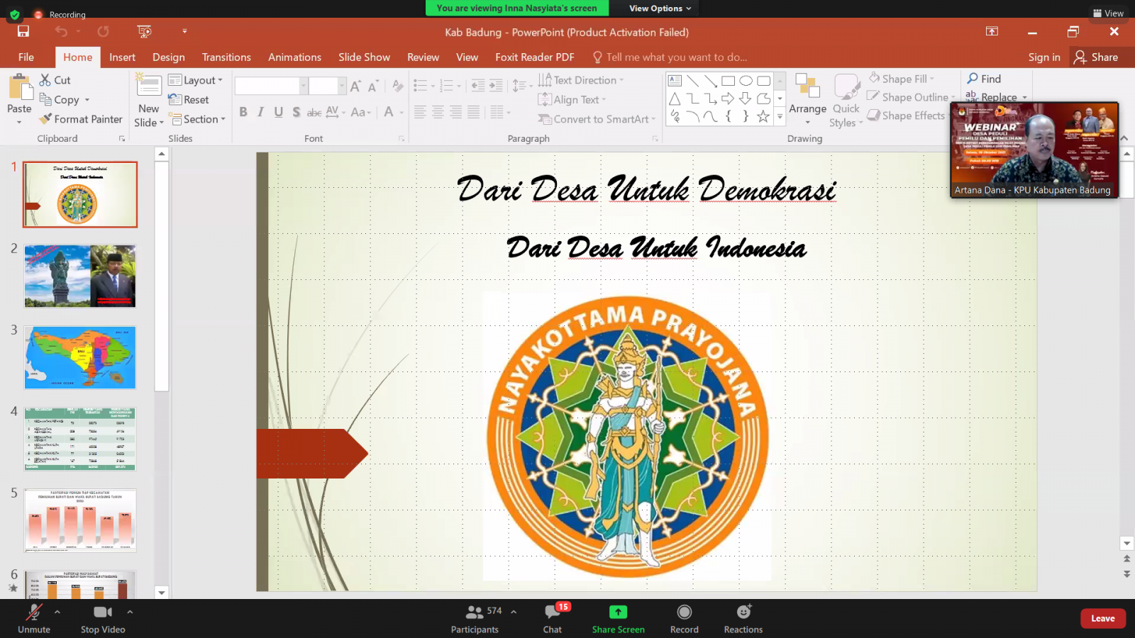 KPU Badung Paparkan Perkembangan Pilot Project DP3 Kelurahan Jimbaran Dalam Webinar DP3 Seri 7