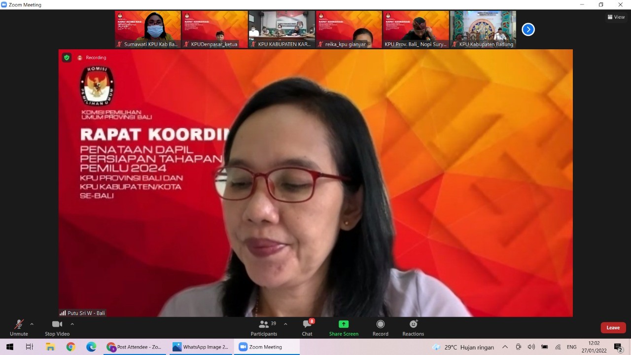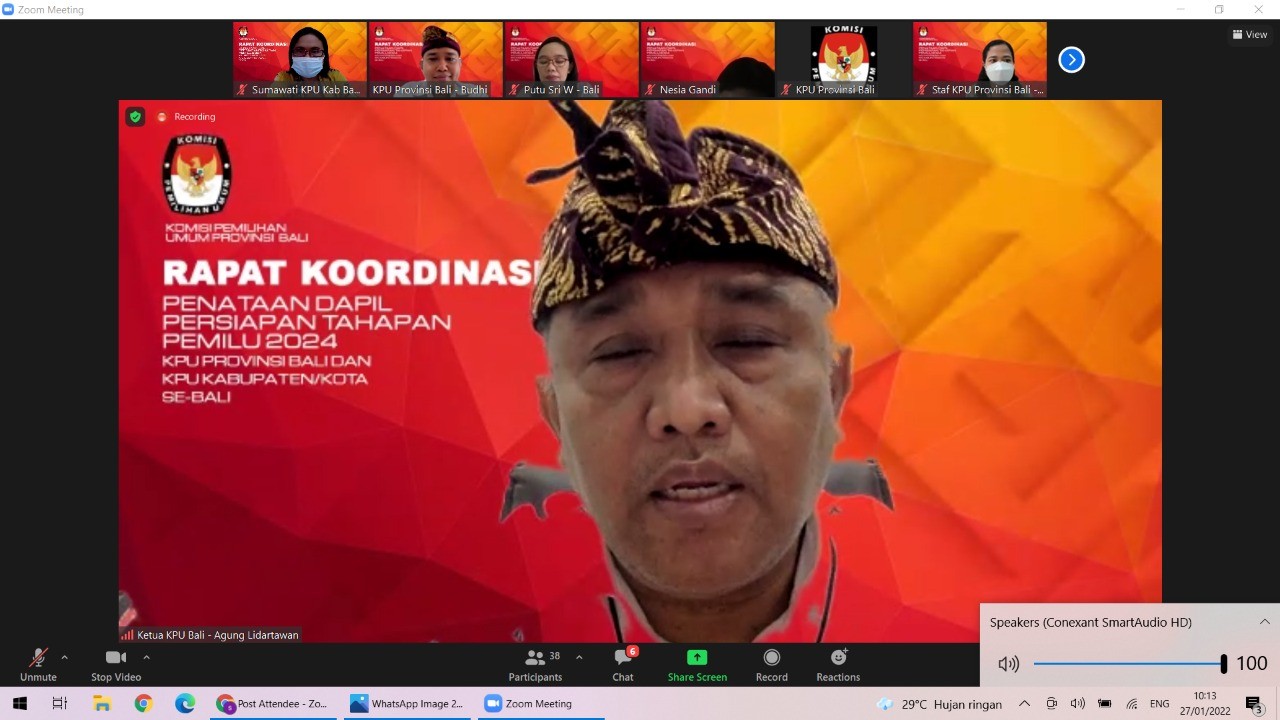 Hal tersebut disampaikan Ketua KPU Provinsi Bali, I Dewa Agung Gede Lidartawan saat membuka Rapat Koordinasi Penataan Dapil Persiapan Tahapan Pemilu tahun 2024 yang diselenggarakan oleh KPU Provinsi Bali, Kamis (27/01) secara daring, dihadiri oleh Ketua dan Anggota KPU beserta Kasubbag Teknis Pemilu dan Hupmas KPU Kabupaten/Kota se Bali.