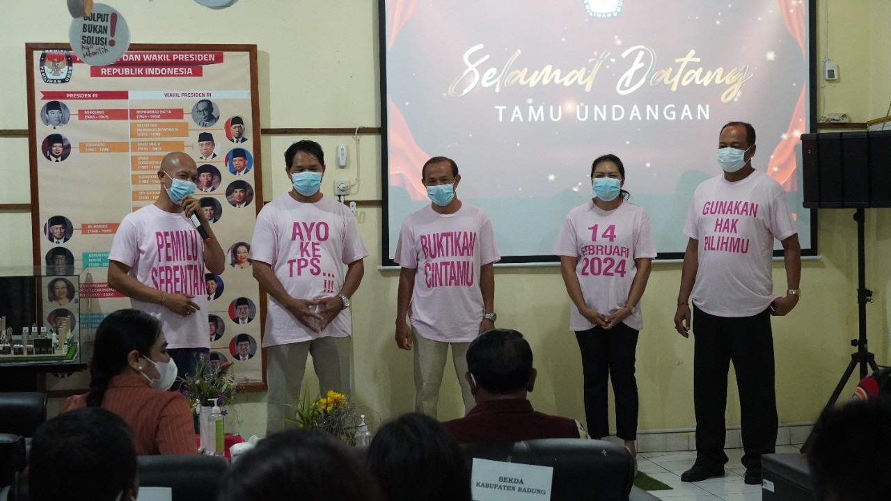 Ketua KPU Kabupaten Badung, I Wayan Semara Cipta, didampingi oleh seluruh komisioner menyampaikan proses penetapan hari pemungutan suara oleh KPU RI sebagai sosialisasi awal pelaksanaan Pemilu Tahun 2024. Disampaikan pula tagline-tagline pemilu untuk menggemakan pelaksanaan pesta demokrasi pemilihan Presiden dan Wakil Presiden, Anggota DPR, DPD dan DPRD.