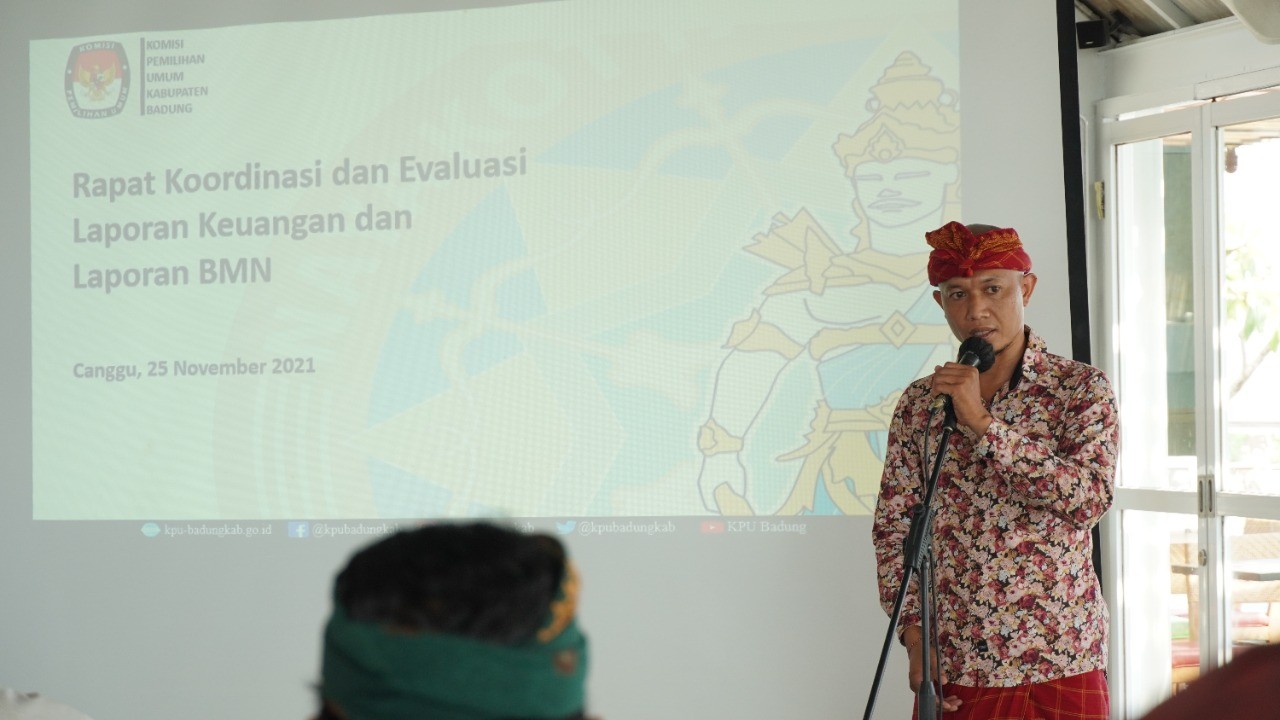 Mangupura - Dalam rangka penguatan internal kelembagaan terkait penyusunan laporan keuangan dan BMN, KPU Kabupaten Badung melakukan rapat koordinasi dan evaluasi (Kamis, 25/11). Rapat ini dirangkai dengan sosialisasi terkait prinsip-prinsip dasar pengadaan.