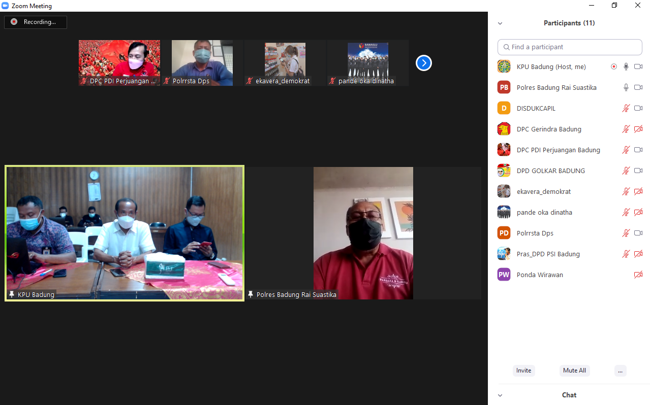 KPU Kabupaten Badung melaksanakan Rapat Rekapitulasi Pemutakhiran Data Pemilih Berkelanjutan (PDPB) bulan Desember tahun 2021 secara daring pada hari Selasa (14/12/2021) dengan mengundang anggota Forum Koordinasi Pemutakhiran Data Pemilih Berkelanjutan di Kabupaten Badung.