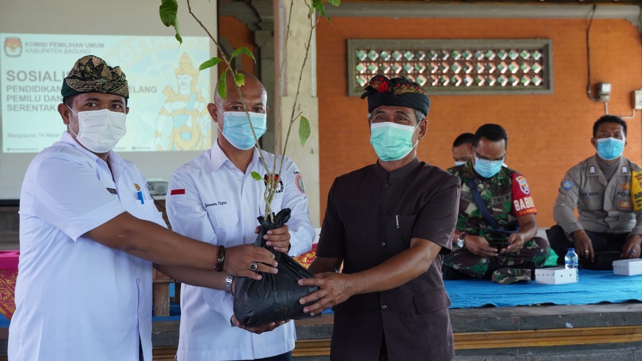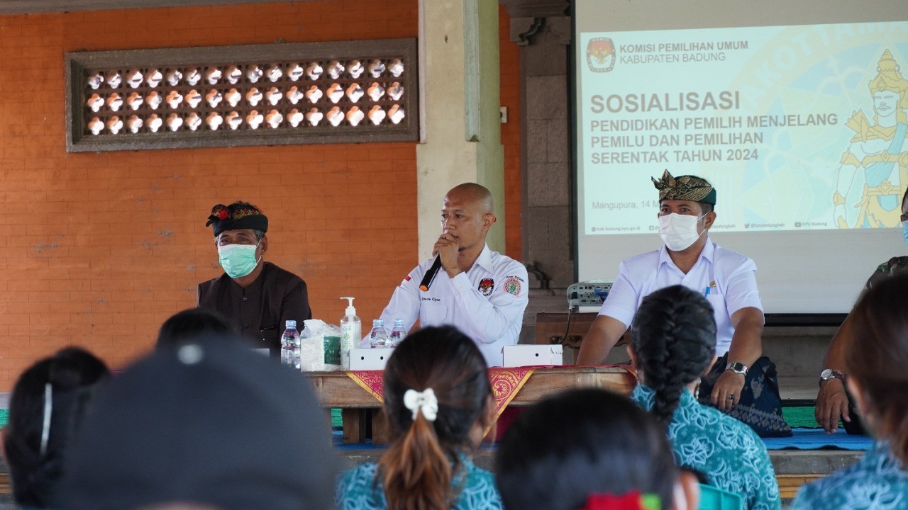 KPU Kabupaten Badung melaksanakan kegiatan "Sosialisasi Pendidikan Pemilih Menjelang Pemilu dan Pemilihan Serentak Tahun 2024" yang bertempat di Wantilan Pura Dalem Desa Adat Darmasaba (Senin, 14/3) yang melibatkan ibu-ibu PKK dan Sekeha Teruna Teruni se-Desa Darmasaba yang disampaikan oleh Ketua Divisi Sosialisasi, SDM, dan Parmas KPU Kabupaten Badung, I Wayan Artana Dana".