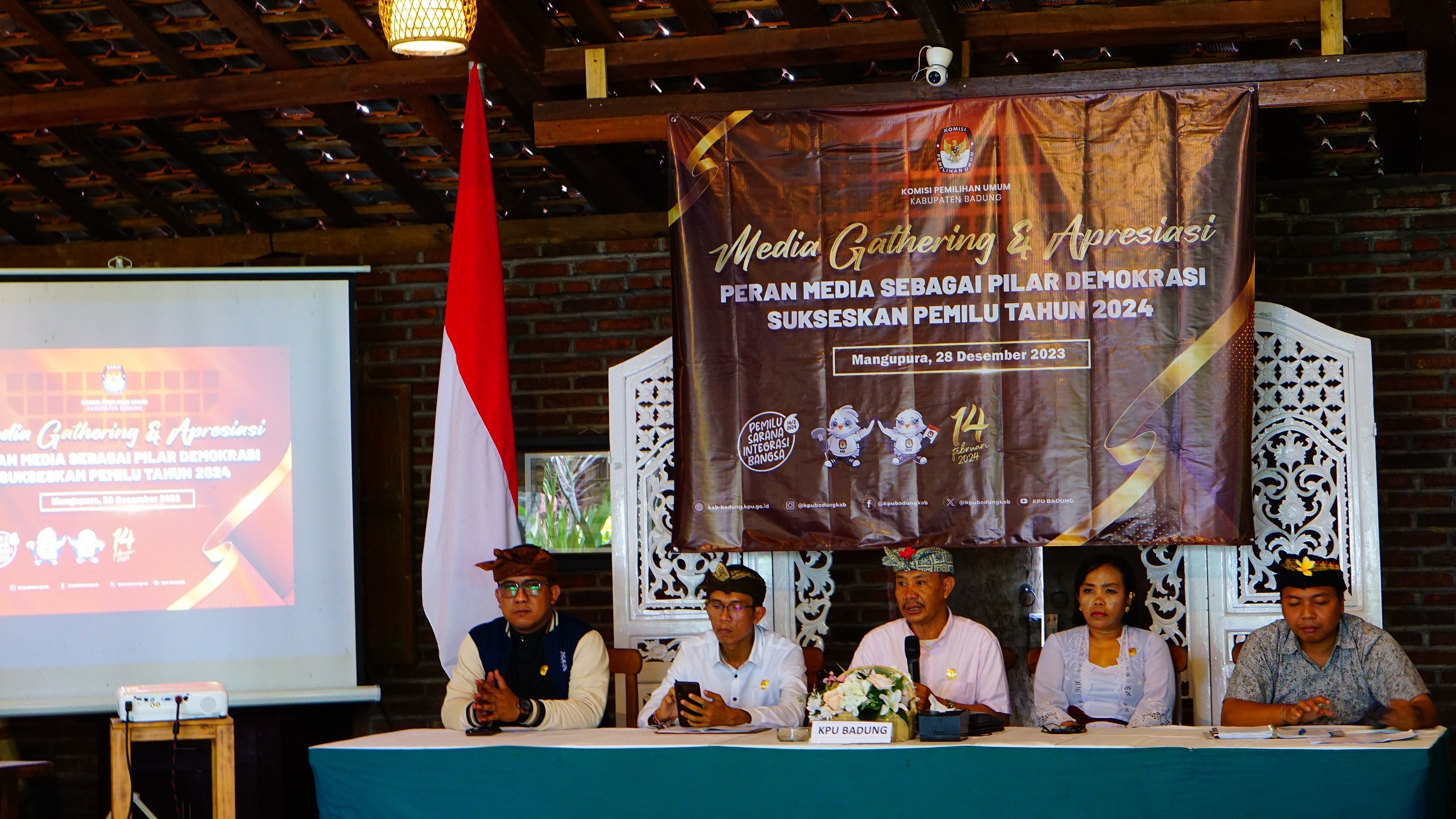 KPU Badung – Dalam rangka meningkatkan partisipasi Masyarakat pada Pemilu Serentak tahun 2024, KPU Kabupaten Badung mengadakan kegiatan media gathering dengan tema “Peran Media Sebagai Pilar Demokrasi Sukseskan Pemilu Tahun 2024.” Acara itu dimulai sekitar pukul 10.00 Wita, bertempat di Warung Mina Dalung, Jalan Padang Luwih Nomor 118, Dalung, Kuta Utara, Kamis (28/12/2023).