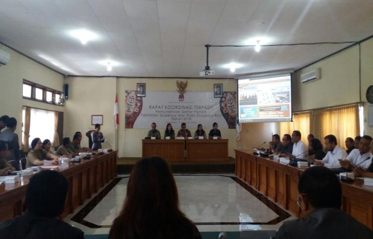 Mangupura- Berkaitan dengan masih berlangsungnya proses coklit dalam tahapan pemutakhiran data pemilih, KPU Kabupaten Badung hadir dalam rapat koordinasi di KPU Provinsi Bali, Senin (5/2/2018). Rapat koordinasi ini diantaranya membahas permasalahan yang dihadapi selama proses coklit sejak 20 Januari 2018 yang lalu. Terdapat beberapa hal penting yang menjadi pembahasan dalam rapat koordinasi terpadu pemutakhiran data pemilih ini. Diantaranya disampaikan Komisioner KPU Provinsi Bali Ni Kadek Wirati, yang menekankan syarat menjadi pemilih dengan kepemilikan KTP el atau suket, serta evaluasi pelaksanaan coklit yang dilakukan oleh Petugas Pemutakhiran Data Pemilih (PPDP) dalam pengisian formulir. Berkaitan dengan proses perekaman KTP el di Kabupaten Badung, masih terdapat warga yang belum melakukan perekaman dan perolehan keping KTP el. Disampaikan Kabid Pelayanan Administrasi Kependudukan Disdukcapil Badung Putu Suryawati, terdapat 33.713 warga yang belum melakukan perekaman dari total wajib KTP di Kabupaten Badung sebanyak 376.396. Lebih lanjut disampaikan Putu Suryawati, terdapat 76.891 warga yang belum mendapatkan keping KTP el. Rapat yang dihadiri jajaran Komisioner dan Sekretariat KPU se-Bali yang membidangi perencanaan dan data, dihadiri pula pemangku kepentingan terkait. Pada kesempatan tersebut, Ketua Bawaslu Bali I Ketut Rudia menyarankan pemberian perangsang kepada masyarakat dan memaksimalkan fungsi kepala desa/kepala dusun dalam memaksimalkan perekaman KTP el di kabupaten/kota se-Bali.