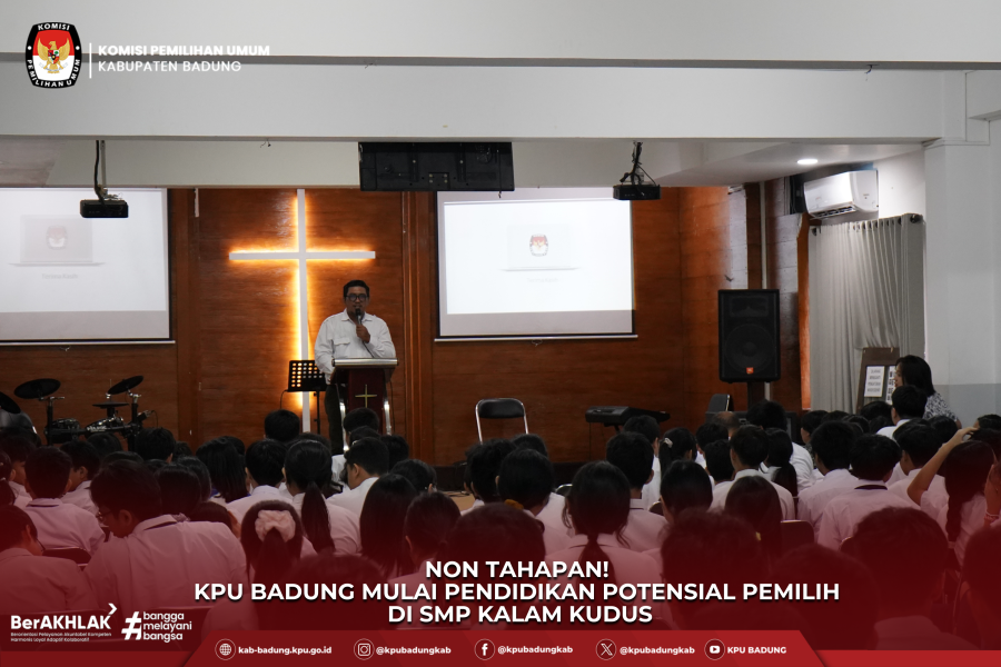 #TemanPemilih - Komisi Pemilihan Umum laksanakan Pendidikan Pemilih kepada potensial pemilih di SMP Kalam Kudus Muding, Kerobokan - Badung.(17/3) Dalam kesempatan tersebut, hadir langsung Ketua KPU Badung - IGKG Yusa Arsana Putra beserta Anggota/Ketua Divisi Sosialisasi, Pendidikan Pemilih, Partisipasi Masyarakat dan Sumber Daya Manusia KPU Badung - Agung Rio Swandisara yang memberikan penyampian dalam mata pelajaran Projek Penguatan Profil Pelajar Pancasila (P5). Agung Yusa menyampaikan "Indonesia merupakan negara Republik jika dijawantahkan menjadi Re-Public yang artinya Mengembalikan Kepada Rakyat sebagaimana tertuang dalam Pasal 1 UUD NRI 1945 dan kedaulatannya berada di tangan rakyat" ujarnya. Dikesempatan yang sama, Agung Rio menyampaikan "Pentingnya kesadaran Demokrasi dan Hak Politik warga negara sejak dini dipupuk sehingga setiap Warga Negara memiliki tanggung jawab moral terhadap keberlangsungan pemerintahan di Negara Kesatuan Republik Indonesia" imbuh Agung Rio. Saat ditemui #HumasKPUBadung usai memberikan materi, Agung Rio menambahkan "KPU Kabupaten Badung juga membuka kesempatan kerjasama kepada seluruh elemen masyarakat dan lembaga dalam meningkatkan upaya kesadaran politik dan demokrasi masyarakat di Kabupaten Badung sehingga kedepannya proses-proses Demokrasi seperti Partisipasi Masyarakat sebagai pemilih maupun penyelenggara pemilu dapat meningkat. Silahkan menyampaikan ke kami, dan dipastikan KPU akan hadir sebagai pemateri maupun narasumber." imbuh Agung Rio.