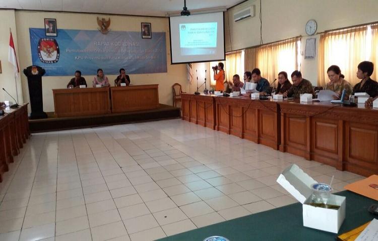 Mangupura- Dalam rangka mempersiapkan daftar pemilih Pemilihan Gubernur dan Wakil Gubernur Bali Tahun 2018 yang akurat, komprehensif, dan termutakhir, KPU Kabupaten Badung turut hadir dalam rapat koordinasi pemutakhiran daftar pemilih berkelanjutan. Rapat diselenggarakan oleh KPU Provinsi Bali pada Jumat (24/3/2017) di Denpasar. Rapat koordinasi dibuka oleh Divisi Perencanaan dan Data KPU Provinsi Bali Kadek Wirati. Dalam pengarahannya Kadek Wirati menekankan permasalahan yang ditimbulkan dalam penerapan PKPU No 8 Tahun 2016 pasal 4, ayat 2 yang menyatakan bahwa pemilih adalah penduduk yang sudah memiliki KTP elektronik. Namun penerapan di lapangan menunjukkan masih banyak penduduk yang sudah berumur 17 tahun maupun belum berusia 17 tahun tetapi sudah/pernah kawin, belum memiliki KTP elektronik. Sebagai solusi untuk mengatasi masalah ini, Dinas Dukcapil se-Bali akan melakukan jemput bola perekaman KTP elektronik ke setiap desa dan kelurahan. Selain itu, akan melakukan sinkronisasi data pemilih dengan membandingkan data csv by name yang diberikan oleh KPU Provinsi Bali ke Dinas Dukcapil se-Bali, dengan data base data kependudukan yang ada di dinas. Sedangkan dari pihak KPU akan memberikan sosialisasi kepada masyarakat untuk segera melakukan perekaman KTP elektronik.