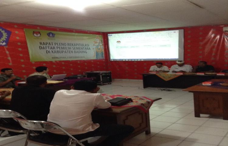 Mangupura Rabu (2/9), Komisi Pemilihan Umum (KPU) Kabupaten Badung melakukan rapat pleno Daftar Pemilih Sementara (DPS) pemilihan Bupati dan Wakil Bupati Tahun 2015. Acara rapat pleno yang dilaksanakan di ruang media center kpu badung pukul 13.00 wita dihadiri oleh seluruh komisiner, ketua Panitia Pemilihan Kecamatan (PPK), Tim kampanye masing-masing pasangan calon. Dari DPS yang ditetapkan, jumlah pemilih di Kabupaten badung sebanyak 363.966 pemilih, jumlah pemilih terbanyak di kecamatan mengwi sebanyak 94.253 pemilih, sementara pemilih terkecil sebanyak 24.983 pemilih, sementara jumlah Tempat Pemunggutan Suara (TPS) yang ditetapkan berjumlah 574 tps. Besaran DPS yang ditetapkan setelah dilakukan singkronisasi dari Data Penduduk Pemilih Potensial Pemilih (DP4) dengan Pilpres yakni 393.825 pemilih.Dijelaskan oleh Anak Agung Raka Nakula, SH.MH. “ dalam daftar pemilih DPS ini ada pemilih tambahan sebesar 3.978 pemilih. Namun ada juga pemilih yang dihapus karena tidak memenuhi syarat sebagai pemilih seperti telah meninggal dunia, pindah domisili, identitas tidak lengkap yang totalnya mencapai 5.075 pemilih. Ditambahkan pula oleh agung nakula “ data DPS ini masih akan bisa berubah sesuai dengan tahapan pemuktahiran yang akan dilaksasnakan yaitu pengumuman dan menerima masukan dan tanggapan dari masyarakat sebelum ditetapkan menjadi Daftar Pemilih Tetap (DPT).tambahnya.
