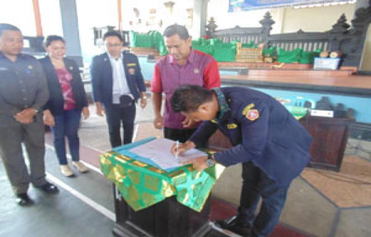 Penandatanganan kerjasama (MOU) dalam kegiatan sosialisasi dan pendidikan pemilih pada sekmen pemilih pemula, perempuan, tokoh agama, adat, dan masyarakat umum antara KPU Kab.Badung dengan ORMAS KARANG TARUNA WIDYA DHARMA BAKTI Desa Kapal, kec. Mengwi, kab.Badung.