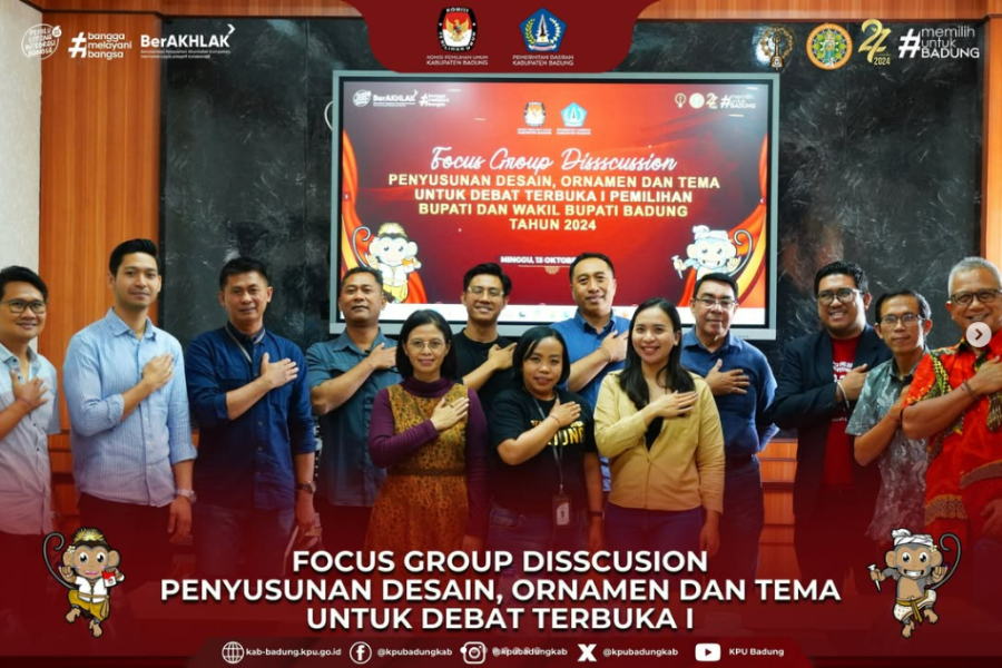 #TemanPemilih, Dalam rangka pelaksanaan Kampanye Pemilihan Bupati dan Wakil Bupati Badung Tahun 2024, Komisi Pemilihan Umum Kabupaten Badung melaksanakan Focus Group Discussion (FGD) terkait persiapan Debat Publik atau Debat Terbuka antar Pasangan Calon Bupati dan Wakil Bupati Badung Tahun 2024 dengan tema ”Penyusunan Desain, Ornamen, dan Tema” untuk Debat Terbuka I Pemilihan Bupati dan Wakil Bupati Badung tahun 2024.