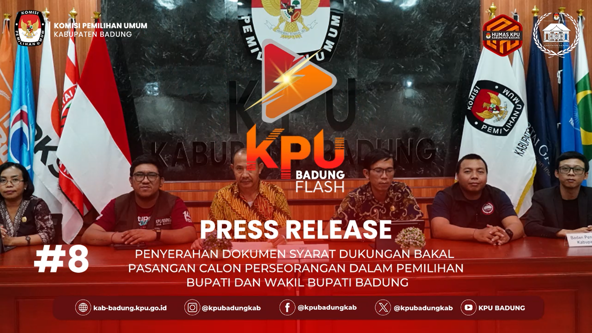 Berdasarkan PKPU Nomor 9 Tahun 2020 tentang perubahan keempat atas PKPU Nomor 3 Tahun 2017 tentang Pencalonan Pemilihan Gubernur dan Wakil Gubernur, Bupati dan Wakil Bupati, serta Walikota dan Wakil Walikota, Keputusan KPU No 532 tentang Pedoman Teknis Pemenuhan Syarat Dukungan Pasangan Calon Perseorangan Dalam Pemilihan Gubernur dan Wakil Gubernur, Bupati dan Wakil Bupati, serta Walikota dan Wakil Walikota, Surat Dinas Komisi Pemilihan Umum Republik Indonesia No.676/PL.02.2-SD/05/2024 Perihal Persiapan Penyerahan syarat dukungan bakal pasangan calon perseorangan pada pemilihan serentak tahun 2024, Surat Keputusan KPU Kabupaten Badung No.371 tentang jumlah minimal Dukungan Pasangan Calon Perseorangan Dalam Pemilihan Bupati dan Wakil Bupati Badung tahun 2024. Sesuai tahapan Pemenuhan Syarat Dukungan Pasangan Calon Perseorangan Dalam Pemilihan Gubernur dan Wakil Gubernur, Bupati dan Wakil Bupati, serta Walikota dan Wakil Walikota, KPU Kabupaten Badung telah melaksanakan kegiatan sebagai berikut : a. Sosialisasi pemenuhan syarat dukungan pasangan calon perseorangan, di Ruang Pertemuan KPU Badung pada tanggal 3 Mei 2024 dengan menghadirkan peserta dari pemerintah daerah, stake holder, organisasi kemasyarakatan, dan tokoh agama serta Bawaslu Kabupaten Badung. b. Melakukan Pengumuman Penyerahan Dukungan sesuai Pengumuman No.965/PL.02.2-PU/5103/2/2024 tentang perubahan Pengumuman Komisi Pemilihan Umum Kabupaten Badung No.961/PL.02.2-PU/5103/2/2024 tentang jadwal penyerahan syarat dukungan bakal pasangan calon perseorangan dalam pemilihan Bupati dan wakil Bupati Badung tahun 2024, terhitung mulai dari tanggal 5 Mei 2024 sampai pada tanggal 7 Mei 2024 di laman KPU Badung, Papan Pengumuman dan Media Cetak Nusa Bali, Tribun Bali dan di Media Elektronik di Radio RRI dan Radio Thompson Bali. c. Dalam mempersiapkan penerimaan penyerahan Syarat Dukungan Pasangan Calon Perseorangan Dalam Pemilihan Bupati dan Wakil Bupati Badung, yang dilaksanakan dari tanggal 8 Mei 2024 sampai tanggal 12 Mei 2024, KPU Kabupaten Badung telah melaksanakan simulasi penerimaan penyerahan Syarat Dukungan Pasangan Calon Perseorangan Dalam Pemilihan Bupati dan Wakil Bupati Badung pada tanggal 9 Mei 2024 bertempat di Kantor KPU Kabupaten Badung, Graha Pemilu Alaya Giri Nata, dengan melibatkan Bawaslu Kabupaten Badung dan Kesbangpol Kabupaten Badung. d. Hingga pada akhir batas waktu jadwal penyerahan Dokumen Syarat Dukungan Pasangan Calon Perseorangan kepada KPU Kabupaten Badung, Minggu, 12 Mei 2024 pk.23.59 Wita, tidak ada pasangan calon ataupun LO atau sebutan lain, melakukan koordinasi serta menyampaikan penyerahan dokumen syarat dukungan Calon Perseorangan kepada KPU Kabupaten Badung, sebagaimana dituangkan dalam Berita Acara Rapat Pleno KPU Kabupaten Badung No. 398/PL.02.2-BA/5103/2/2024 tanggal 12 Mei 2024, tentang Rekapitulasi Penyerahan Dokumen Syarat Dukungan Bakal Pasangan Calon Perseorangan dalam Pemilihan Bupati dan Wakil Bupati Badung. (yp/HM)