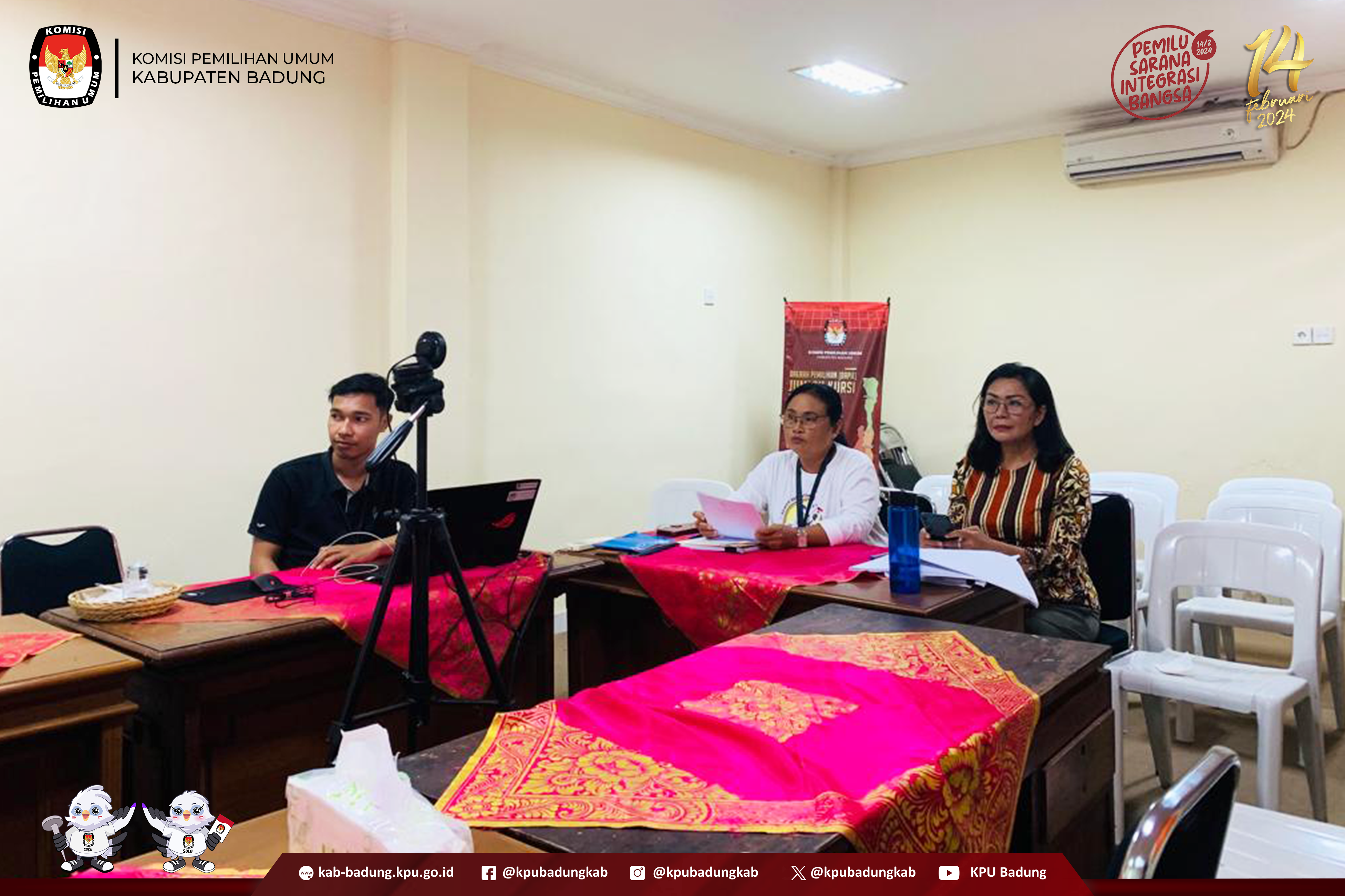 Dari Kesekretariatan hadir Sekretaris KPU Badung, I Wayan Nopi Suryanto dan salah satu Kepala Sub Bagian (Kasubbag) Teknis Penyelenggaraan Pemilu, Partisipasi dan Hubungan Masyarakat, Ni Made Sumawati. Terlihat juga Operator Sistem Informasi Pencalonan (SILON) KPU Badung.