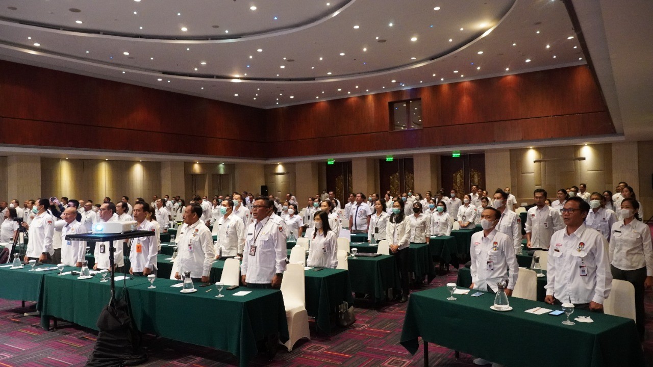 Mangupura, kab-badung.kpu.go.id - Pegawai ASN KPU Kabupaten Badung mengikuti Pelatihan Dasar Tata Kelola Pemilu yang diselenggarakan oleh KPU RI. Kegiatan yang dibuka oleh Ketua KPU Provinsi Bali, I Dewa Agung Gede Lidartawan di ballroom Hotel Prime Plaza Sanur, Denpasar, Kamis (16/06).