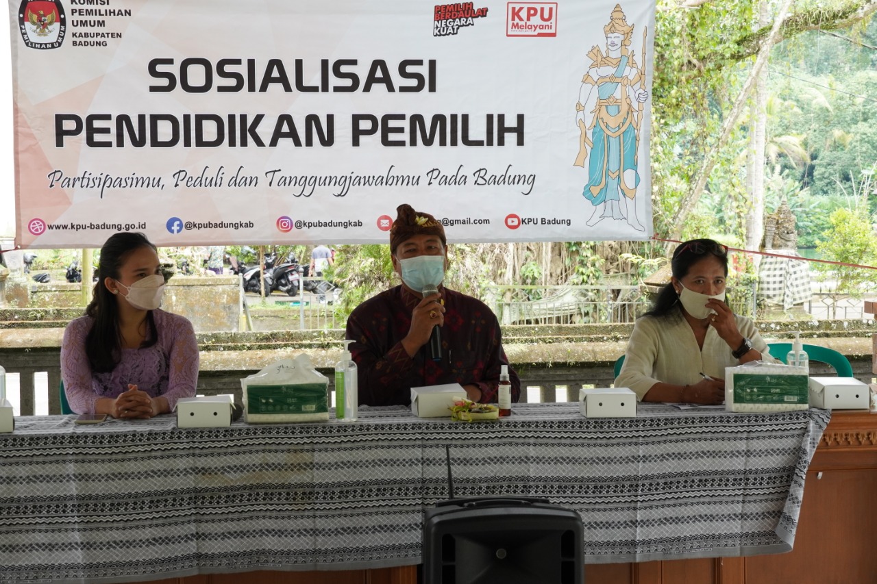 Mangupura - Sebagai Pilot Project pelaksanaan Program Desa Peduli Pemilu dan Pemilihan, KPU Kabupaten Badung bersama Pemerintah Kabupaten Badung, dalam hal ini Kecamatan Kuta Selatan didaulat sebagai salah satu narasumber dalam Webinar DP3 Seri 7 dengan tema “Potret Perkembangan Pilot Project Desa Peduli Pemilu dan Pemilihan di berbagai Daerah di Indonesia” yang diselenggarakan oleh KPU RI, Selasa (26/10/2021). Pada kesempatan pertama, Anggota KPU Kabupaten Badung Divisi Sosialisasi, Pendidikan Pemilihan, Partisipasi Masyarakat dan SDM, I Wayan Artana Dana menyampaikan perkembangan pelaksanaan program DP3 dengan locus di Kelurahan Jimbaran, Kecamatan Kuta Selatan. Dalam pemaparannya disampaikan dasar penunjukan Kelurahan Jimbaran sebagai locus pelaksanaan program DP3 karena tingkat partisipasi Pemilih pada Pemilihan Serentak Tahun 2020 di Kelurahan Jimbaran merupakan yang terendah. Camat Kuta Selatan Dr. I Ketut Gede Artha, AP, SH, M.Si. mengapresiasi program DP3 dilaksanakan di Kelurahan Jimbaran yang notabene daerah pariwisata dengan jenis pemilih beragam. Melalui program ini peserta yang terdiri dari berbagai latar belakang diharapkan mendapat informasi kepemiluan yang baik untuk selanjutnya dapat mengetoktularkan kepada masyarakat guna meningkatkan partisipasi pemilih kedepannya. Informasi kepemiluan yang valid diharapkan dapat membangun kesadaran masyarakat untuk menggunakan hak pilih guna meningkatkan partisipasi masyarakat, khususnya menjelang pelaksanaan Pemilu dan Pemilihan Serentak Tahun 2024. Foto terkait: