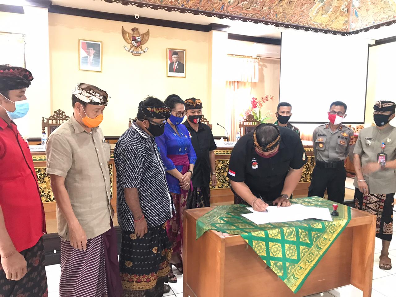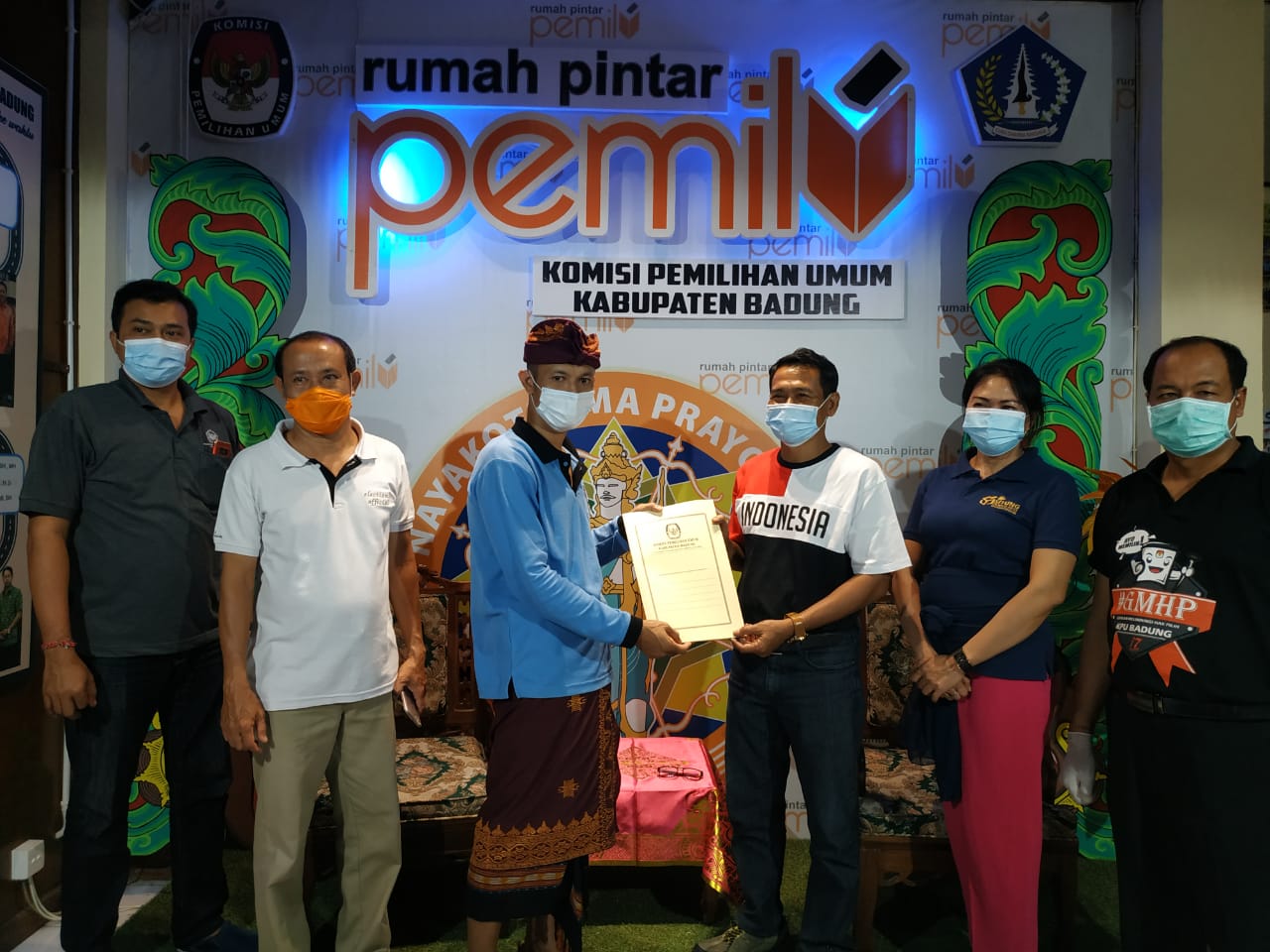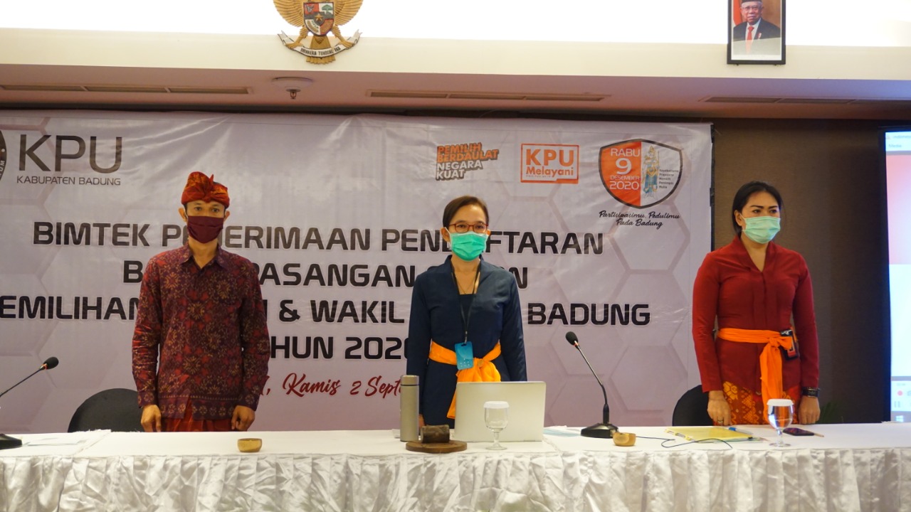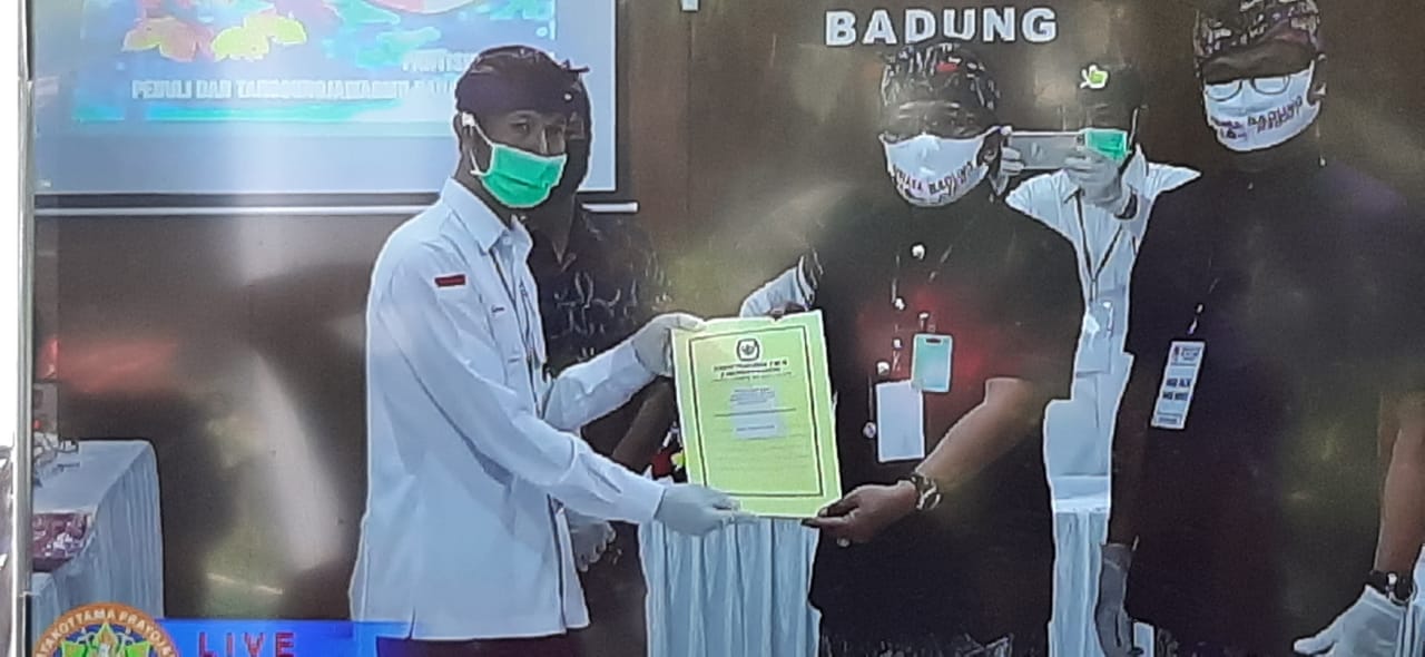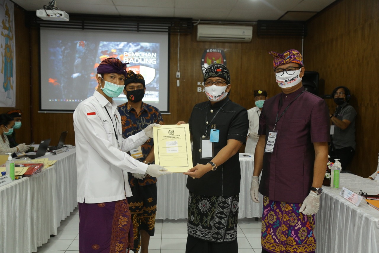 MANGUPURA. Diterima pada hari pertama masa pendaftaran bakal pasangan calon dalam Pemilihan Bupati dan Wakil Bupati Badung Tahun 2020, paket Giriasa sebutan pasangan Bakal Calon dari petahana I Nyoman Giri Prasta dan I Ketut Suiasa, dinyatakan telah penuhi persyaratan. Rombongan hadir bersama partai Pengusung dan juga para simpatisannya di Kantor KPU Kabupaten Badung, Jumat (04/09/2020). Bakal pasangan calon ini maju dengan bermodalkan dukungan Partai Politik dengan total 37 kursi pada DPRD Kabupaten Badung. Dukungan terdiri dari PDI Perjuangan sejumlah 28 kursi, Golkar sejumlah 7, dan Demokrat sejumlah 2 kursi. Paket Giriasa diterima di ruang rapat Kantor KPU Kabupaten Badung, dengan penerapan pembatasan personil dan protocol Kesehatan pencegahan penyebaran Covid-19. “Dalam proses penerimaan pendaftaran berkas bakal paslon ini, kita mengapresiasi tadi sudah datang hari ini. Dan mohon maaf kondisi ruangan kita harus mematuhi protokol kesehatan,” sambut Ketua KPU Kabupaten Badung I Wayan Semara Cipta. Dalam penelitian dokumen persyaratan pencalonan dan persyaratan calon, KPU Kabupaten Badung melakukan penelitian kelengkapan dan keabsahan dokumen persyaratan pencalonan Bakal Pasangan Calon. Selain itu, melakukan penelitian kelengkapan dokumen persyaratan calon dan menuangkan hasil penelitian kelengkapan dan keabsahan dokumen persyaratan pencalonan dalam Formulir Model TT.1-KWK dan lampiran Formulir Model TT.1-KWK. Berdasarkan hasil pemeriksaan tersebut, dinyatakan hasilnya telah lengkap, sehingga pendaftaran Bakal Pasangan Calon atas nama I Nyoman Giri Prasta dan I Ketut Suiasa tersebut dinyatakan diterima oleh KPU Kabupaten Badung. Hasilnya diinput langsung pada Aplikasi Sistem Informasi Pencalonan (SILON) pada website KPU RI. Ketua Tim Pemenangan I Gusti Anom Gumanti mengatakan terima kasih kepada KPU Badung yang telah memberikan tempat serta ruang untuk mengantarkan bakal calon melakukan pendaftaran. “Kami juga memohon maaf, jika dalam pelaksanaan ini ada hal-hal yang kurang berkenan di hati. Tentu yang menjadi orientasi, kami akan selalu taat dengan aturan yang ada, kami akan selalu meminta petunjuk dan arahan kepada KPU dan Bawaslu,” ujar politisi dari fraksi PDIP ini. Sementara itu, Ketua Bawaslu Badung I Ketut Alit Astasoma menerangkan mekanisme penerimaan syarat pencalonan dan syarat calon. “Pantauan kami, salut sekali terutama dari KPU mengatensi terkait dengan kegiatan ini,” imbuhnya. Lebih jauh ia mengingatkan di masa pandemi ini turut mengawal proses tahapan, jangan sampai ada hal-hal yang tidak inginkan. Hadir dan menyaksikan langsung urutan prosesi penerimaan tersebut Anggota KPU Provinsi Bali Divisi Teknis Penyelenggaraan Luh Putu Sri Widyastini, Ketua Bawaslu Kabupaten Badung I Ketut Alit Astasoma, dan Anggota Bawaslu Kabupaten Badung I Made Pande Yuliartha. Selanjutnya dilaksanakan serah terima Berita Acara Pendaftaran Bakal Pasangan Calon Dalam Pemilihan Bupati Dan Wakil Bupati Badung Tahun 2020, Formulir Model TT.1-KWK dan Lampirannya kepada masing-masing kepada Bakal Pasangan Calon, perwakilan Partai Politik atau Gabungan Partai Politik, Bawaslu Kabupaten Badung. Foto terkait :