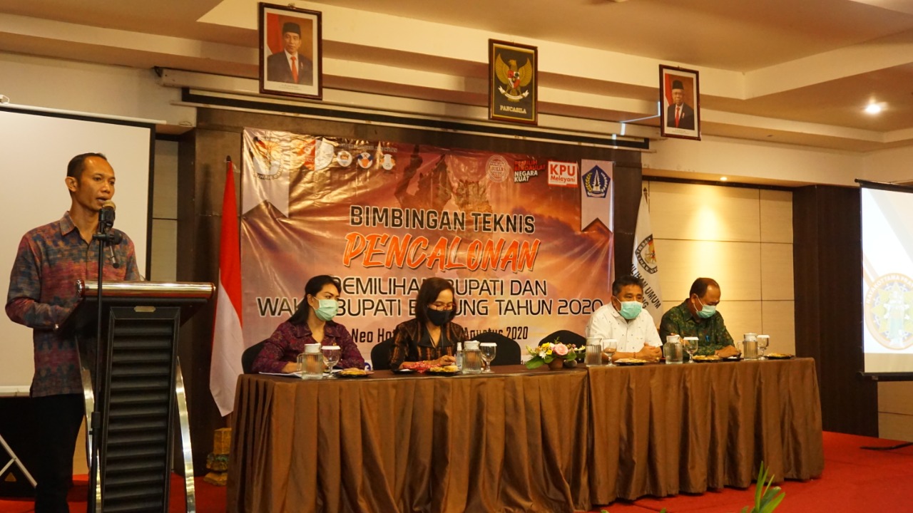 MANGUPURA. Salah satu tahapan yang sangat krusial dalam Pemilihan Serentak Tahun 2020 ialah pencalonan. Untuk itu KPU Kabupaten Badung menggelar Bimbingan Teknis Pencalonan pada Selasa, (11/08/2020) bertempat di Neo Hotel Denpasar. Kegiatan ini sebagai bentuk kesiapan pihak penyelenggara khususnya KPU Kabupaten Badung dalam memberikan pemahaman terkait hal yang diperlukan dalam pencalonan. Hadir dalam acara Ketua KPU Provinsi Bali I Dewa Agung Gede Lidartawan, Anggota KPU Provinsi Bali Luh Putu Sri Widyastini, Forkompinda Kabupaten Badung dan Pimpinan Partai Politik beserta jajaran. “Kami mengucapkan apresiasi sebesar-besarnya kepada stake holder terkait di Kabupaten Badung yang tentunya akan terlibat dalam pelaksanaan tahapan pendaftaran dan penetapan pasangan calon Bupati dan Wakil Bupati Badung Tahun 2020,” buka Ketua KPU Kabupaten Badung I Wayan Semara Cipta. Pria yang akrab disapa Kayun Semara itu menerangkan ada beberapa hal yang menjadi atensi serius dalam hal pencalonan yang diusung oleh partai politik atau gabungan partai politik. Seperti proses pendaftaran dan penetapan pasangan calon, pelaksanaan kampanye dengan meminimalisasi penggunaan alat peraga kampanye berupa baliho. Tidak lupa orang nomor satu di KPU Kabupaten Badung ini menyampaikan terkait progres pemutakhiran data pemilih. “Dalam pengumuman DPS nanti kami berharap data ini dapat dicermati oleh Parpol. Jika ada yang belum terdaftar agar segera menyampaikan kepada PPS bilamana masih ada ada pemilih yang belum terdaftar/tercecer,” tegasnya. “Kami harapkan partisipasi dari semua pihak, mohon masukan dan kritik dari seluruh komponen, sehingga pelaksanaan tahapan Pilkada Badung Tahun 2020 dapat berjalan dengan baik, minimal kami dapat memenuhi target partisipasi masyarakat sebesar 85%,” ujar pria asal Banjar Cabe, Desa Darmasaba, Kecamatan Abiansemal ini. Selanjutnya Ketua KPU Provinsi Bali I Dewa Agung Lidartawan mengatakan dengan adanya kegiatan ini, pihaknya berterima kasih bahwa kita sama-sama sudah mulai menggerakkan kembali perekonomian lokal melalui pertemuan tatap muka. “Masalah pencalonan, tentunya kami mendorong semua partai politik untuk dapat berpartisipasi. Saat ini jangan hanya mencari menang saja, tetapi yang perlu dipahami adalah proses pembelajaran dan kaderisasi dari parpol,” bebernya. Mantan Ketua KPU Bangli ini menambahkan dalam masa pandemi Covid-19, ada beberapa perubahan pelaksanaan pemungutan suara di TPS. Di antaranya simulasi pemungutan suara dengan kondisi pandemi, pemberian panggilan pemilih melalui formulir C6, setiap penyelenggara harus bebas Covid-19 dan penyemprotan disinfektan TPS sebelum dimulainya proses pemungutan suara. Selain itu, ada pengecekan suhu tubuh, jika pemilih suhu tubuhnya 37 keatas maka akan ada jalur khusus. Pemilih harus mencuci tangan sebelum masuk TPS, pemberian sarung tangan sekali pakai, paku yang digunakan akan dilakukan sterilisasi dalam beberapa kali pakai, setelah mencoblos penggunaan tinta tidak lagi dicelup, melainkan disemprot atau tetes/dropping. “Dari semua perubahan dan antisipasi tersebut diharapkan tidak ada lagi keraguan dari masyarakat untuk datang ke TPS menggunakan hak pilihnya,” tegasnya. Sementara itu, Anggota KPU Provinsi Bali Luh Putu Sriwidyastini menyampaikan secara detail terkait jadwal dan tahapan pencalonan yang mengacu pada PKPU No 1 Tahun 2020. “Dimulai dari pengumuman pendaftaran pada 28 sampai 30 Agustus 2020, pendaftaran paslon pada 4 sampai 6 September 2020, pemeriksaan kesehatan 4 sampai 11 September 2020, verifikasi dokumen 4 sampai 22 September 2020, penetapan paslon 23 September 2020 dan pengundian nomor urut paslon 24 September 2020,” ujarnya saat memberikan materi di hadapan peserta bimtek. Syarat pencalonan juga dibahas dalam pertemuan ini, seperti semua pihak mendapatkan hak yang setara dalam pelayanan, seleksi terbuka dan demokratis oleh masing-masing parpol dan memenuhi syarat pencalonan sesuai yang telah ditetapkan oleh KPU kabupaten/kota yaitu 20% penetapan perolehan kursi atau 25% penetapan perolehan jumlah suara sah hasil Pemilu anggota DPRD Tahun 2019. Foto terkait :