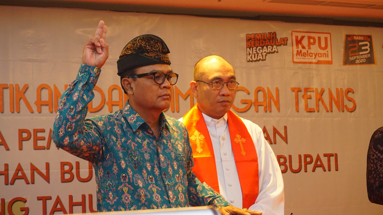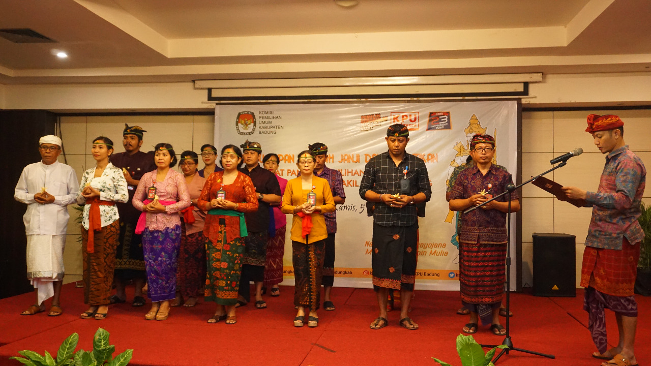 MANGUPURA. 18 orang Sekretariat Panitia Pemilihan Kecamatan dilantik dan diambil sumpahnya oleh Komisi Pemilihan Umum Kabupaten Badung bertempat di Neo Hotel Denpasar pada Kamis, (05/03/2020). Acara diawali dengan pembacaan SK Penetapan dan Pengangkatan Sekretariat PPK oleh Komisioner KPU Kabupaten Badung Divisi Sosialisasi dan SDM I Wayan Artana Dana. Setelah melantik Sekretariat PPK, Ketua KPU Kabupaten Badung I Wayan Semara Cipta dalam laporannya pertama menyampaikan selamat kepada mereka yang sudah diambil sumpah dan janjinya serta untuk mengemban tugas turut menyukseskan Pemilihan Bupati dan Wakil Bupati Badung 23 September 2020. “PPK ini selaku ujung tombak penyelenggara ditingkat kecamatan, tentu disini agak sedikit berbeda posisinya bahwasanya proses untuk memilih Sekretariat PPK adalah melalui pengajuan dari kecamatan masing-masing artinya Bapak/Ibu adalah orang-orang yang dipercaya untuk mengemban tugas turut serta menyukseskan Pemilihan Bupati dan Wakil Bupati Badung Tahun 2020,” terangnya. Semara Cipta juga membacakan sambutan Ketua KPU Provinsi Bali yang berhalangan hadir, pada intinya mengucapkan selamat datang dan selamat bergabung kepada Sekretaris dan seluruh jajaran Sekretariat Panitia Pemilihan Kecamatan yang baru saja dilantik. Dengan harapan Sekretariat PPK dapat mengemban tugas dan tanggung jawab untuk memfasilitasi PPK dengan baik berdasarkan ketentuan perundangan-undangan yang berlaku. “Berdasarkan tugas tersebut, kami minta agar Saudara dapat bekerja dengan baik dalam memfasilitasi seluruh kegiatan PPK, Saudara harus dapat menjalin kerjasama yang baik dengan PPK sehingga seluruh tahapan penyelenggaraan Pemilihan di tingkat Kecamatan di Kabupaten Badung dapat berjalan dengan baik,” kata Semara Cipta membaca sambutan Ketua KPU Provinsi Bali. Diakhir acara ini, Komisioner KPU Kabupaten Badung Divisi Hukum dan Pengawasan Nur Sodiq memberikan pembekalan bagi Sekretariat PPK dengan titik berat Netralitas ASN dalam pilkada serentak tahun 2020. “Netralitas ASN berarti bahwa setiap pegawai ASN tidak berpihak dari segala bentuk pengaruh manapun dan tidak memihak kepada kepentingan siapapun. ASN wajib menjaga netralitasnya sehingga tidak terjadi konflik kepentingan dalam melaksanakan tugasnya,”tegasnya. Pelantikan dihadiri jajaran Forum Komunikasi Pimpinan Daerah Kabupaten Badung, KPU Provinsi Bali, Bawaslu Kabupaten Badung, Instansi terkait di lingkungan Pemerintah Daerah Badung. Foto Terkait :