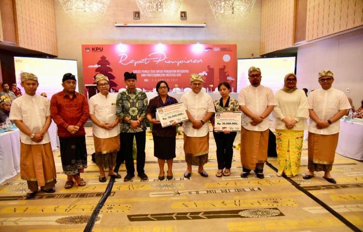 Sebagai bagian dari apresiasi dan ucapan terimakasih kepada segenap stakeholder yang telah turut serta dalam mensukseskan pelaksanaan Pemilu Serentak Tahun 2019, KPU Kabupaten Badung serahkan piagam penghargaan kepada Camat serta Perbekel se-Kecamatan Petang. Diterima dalam acara Program Inovasi Desa di Ruang Pertemuan Kantor Camat Petang, Jumat (13/09/2019), Ketua KPU Kabupaten Badung, I Wayan Semara Cipta menyampaikan ucapan terimakasih atas telah terlaksanya segala tahapan Pemilu Serentak Tahun 2019 hingga dilakukannya pelantikan calon terpilih Anggota DPRD Kabupaten Badung pada 5 Agustus 2019 lalu. “Kami ucapkan terimakasih yang setinggi-tingginya, ini prestasi luar biasa dan patut kita apresiasi bersama, karena Provinsi Bali sebagai wilayah yang tidak terdapat gugatan pada Mahkamah Konstitusi untuk Pemilihan Anggota DPRD Kabupaten/Kota pada Pemilu Serentak Tahun 2019 ini,” kata Semara Cipta dihadapan peserta rapat. Ukuran keberhasilan penyelenggaraan Pemilu Tahun 2019 ini lanjut Semara Cipta juga dapat dilihat dari meningkatnya angka partisipasi pemilih yang hadir ke TPS untuk melakukan pencoblosan. “Untuk Kecamatan Petang telah terjadi peningkatan partisipasi pemilih dari pemilu DPRD Kabupaten/Kota Tahun 2014 sejumlah 84% menjadi 88% pada Pemilu yang sama di tahun 2019 ini,” tambah Semara Cipta Atas diserahkannya piagam penghargaan ini, kembali disampaikan Ketua KPU Kabupaten Badung kepada segenap stakeholder di tingkat Kecamatan Petang, untuk senantiasa menjalin koordinasi dan kerjasama yang telah terbangun baik selama ini, utamanya dalam menyambut pelaksanaan Pemilihan Bupati dan Wakil Bupati Badung Tahun 2020 yang akan datang, dengan cara menyiapkan personil-personil yang akan dijadikan badan penyelenggara adhoc di tingkat kecamatan dan desa, beserta kesekretariatannya. Sebelumnya, pemberian apresiasi serupa sudah pula dilaksanakan di Kecamatan Kuta Utara, Kecamatan Kuta, Kecamatan Abiansemal, Kecamatan Petang. Selanjutnya untuk Kecamatan Mengwi, KPU Badung akan melakukan koordinasi lebih lanjut. FOTO TERKAIT :