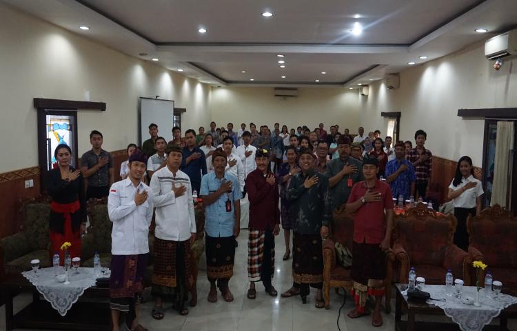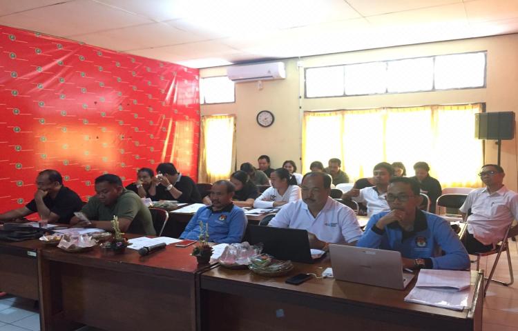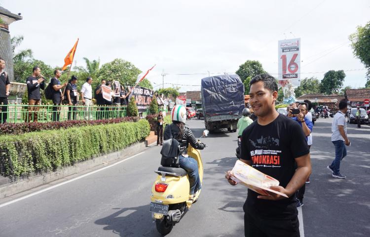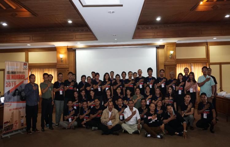 Relawan Demokrasi dibentuk oleh KPU dengan tujuan membantu mensosialisasikan pelaksanaan Pemilu Tahun 2019 untuk meningkatkan partisipasi pemilih, kualitas pemilu dan kesukarelaan masyarakat dalam agenda pemilu dan demokratisasi. Sebelum menjalankan tugasnya melaksanakan sosialisasi berhadapan langsung dengan masyarakat, para Relawan Demokrasi dibekali pemahaman dengan kode etik serta teknis kerja melalui pelaksanaan kegiatan Bimbingan Teknis yang dilakukan di Gedung Madya Gosana DPRD Kabupaten Badung, Jumat (01/02/2019). Hadir dalam acara bimtek dan memberikan pembekalan kode etik, Anggota KPU Provinsi Bali divisi Hukum dan Pengawasan, Anak Agung Gede Raka Nakula, menekankan pentingnya menjaga integritas diri sebagai bagian pelaksanaan kode etik untuk menjalankan tugas sebagai Relawan Demokrasi. “Jagalah integritas sebagai bentuk pelaksanaan kode etik sebagai Relawan Demokrasi, sehingga dalam melaksanakan tugas tidak muncul keragu-raguan, bersemangat dan percaya diri,” kata Agung Nakula menggugah semangat relawan yang hadir. Dalam penyampaian Ketua KPU Kabupaten Badung, I Wayan Semara Cipta menyampaikan bagaimana mekanisme kerja Relawan Demokrasi nantinya melalui pembuatan rencana aksi program. “Yang pertama perlu dilakukan adalah menunjuk coordinator Basis, kemudian silakan nanti menyusul rencana kerja sesuai kreasinya masing-masing dan menginformasikan kepada kami, berikut pelaporan disusun setiap minggunya,” jelas I Wayan Semara Cipta. Anggota KPU Divisi Sosialisasi, I Wayan Artana Dana, menyampaikan tentang pokok-pokok materi yang dapat disampaikan dalam sosialisasi nantinya dan menggunakan atribut dan panduan berupa modul yang telah dibagikan kepada Relawan Demokrasi. Dalam rangka tolok ukur kegiatan, panitia memberikan kuis pre-test dan post-test untuk mengetahui sejauhmana peningkatan pemahaman yang didapat peserta terkait materi yang disampaikan dalam bimtek. Peserta yang hadir juga menerima seminar kit, baju kaos, tanda pengenal, buku modul panduan relawan demokrasi, brosur dan contoh jenis-jenis surat suara pemilu tahun 2019 untuk atribut dan bahan dalam melakukan sosialisasi sebagai Relawan Demokrasi. Usai kegiatan bimtek, para relawan diajak untuk melakukan orasi di luar gedung, tepatnya di pertigaan Patung Hanoman Sempidi, untuk gelar sosialisasi pertama oleh relawan demokrasi di Kabupaten Badung.